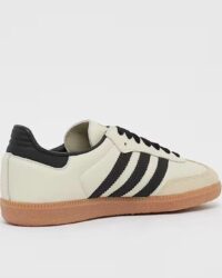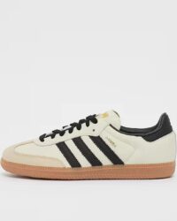 Die flache Gummiaußensohle bietet zuverlässigen Halt auf unterschiedlichen Untergründen und unterstreicht den legendären Charakter des Samba OG. Dank der neutralen beigen Farbgebung lässt sich der Sneaker vielseitig kombinieren und eignet sich ideal für Freizeit, Alltag und urbane Looks.