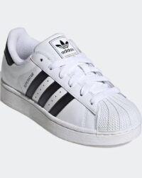 Die charakteristische Gummiaußensohle mit der typischen Shell Toe verleiht dem Modell Stabilität und unterstreicht den legendären Look des Superstar. Die weiße Farbgebung ist zeitlos und vielseitig kombinierbar – ideal für Freizeit, Alltag und urbane Styles.